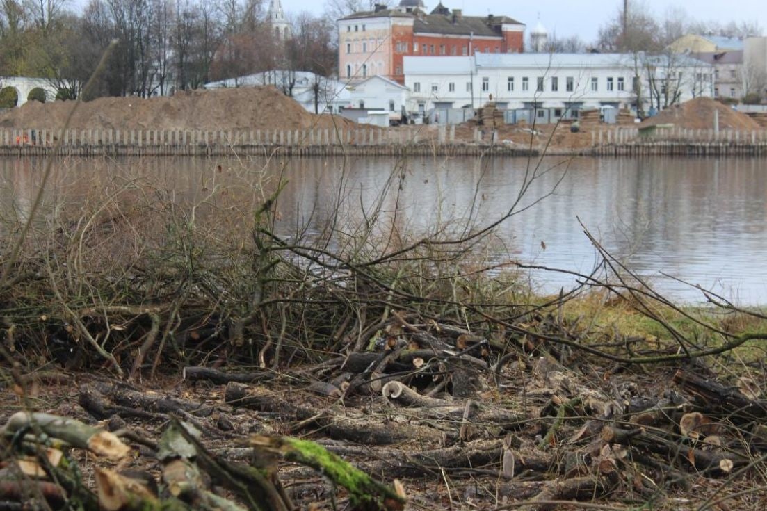МКУ «Городское хозяйство» проводит расчистку острова в реке Волхов. Он находится напротив монумента Победы. Расчистка поможет открыть вид на Рюриково Городище со стороны Кремля и реки